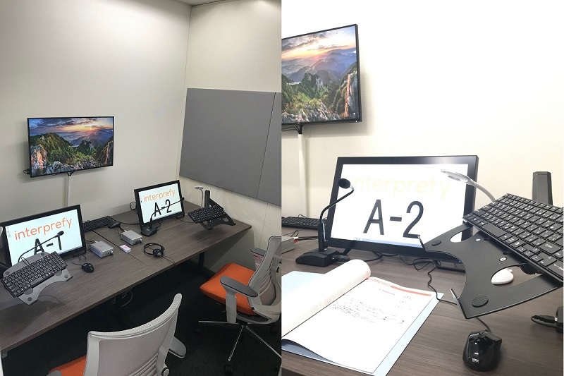 通訳者がしっかりパフォーマンスを発揮できるよう、サイマルでは通訳センターを東京・大阪の各オフィスにご用意しています。既存のWeb会議に同時通訳機能を「後付け」したWeb会議システムでは、通訳者同士が遠隔で連携を取るためには、もう1回線追加でコミュニケーションツールが必要です。通訳者は、通訳センターに集まることで通訳業務に専念することができます。通訳者がより高いパフォーマンスを発揮できるよう、ぜひサイマル通訳センターの活用もご検討ください。