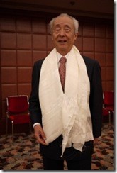 師の話は、誠実さと真心に裏打ちされた素晴らしいもので、聴衆に十分感銘を与えたと思います。講演の後、聴衆は立ち上がって大きな拍手を送りました。その後、師はパネリストと私にチベットの白いスカーフをお土産としてくれ、直接首にかけてくれました。そして「スカーフを差し上げるのはインドの風習で、このスカーフは中国製だ。だからこれはインド、中国、チベットの友好のシンボルだ」と付け加えました。彼の人柄に触れ、素晴らしい話を聞きお土産までいただいて、壇上での苦しみも吹っ飛んでしまいました。
